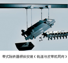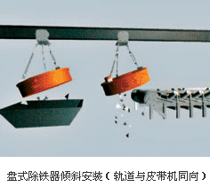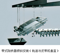 悬挂安装方式分倾斜、水平两种,它们均与除铁器定位在输料带的某个位置工作有关。