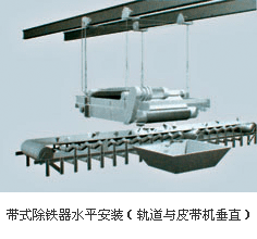 输料大皮带除了上下山段之外,多为水平运行,在大皮带任意水平段上方均可按水平式吊装除铁器。